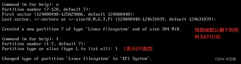 我们的分区目标就只有这三个,输入n创建新的分区: