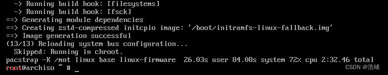这一步不是很难,你可以用Ventoy也可以用上述的教程中的方法。Arch安装是先使用安装镜像里的系统进行配置,再通过chroot命令切换到配置完成的系统。