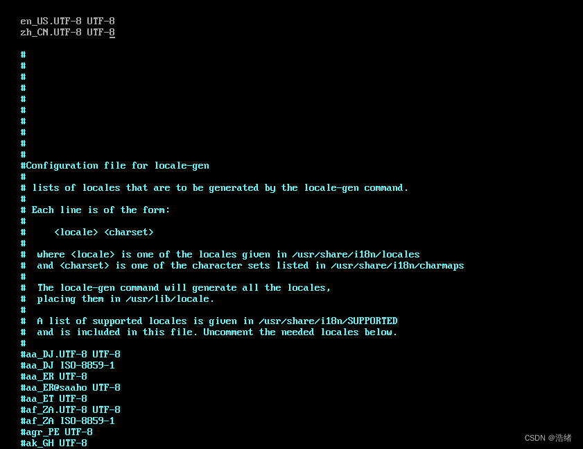 然后使用vim打开/etc/locale.gen文件,在最前面添加en_US.UTF-8 UTF-8和zh_CN.UTF-8 UTF-8。
